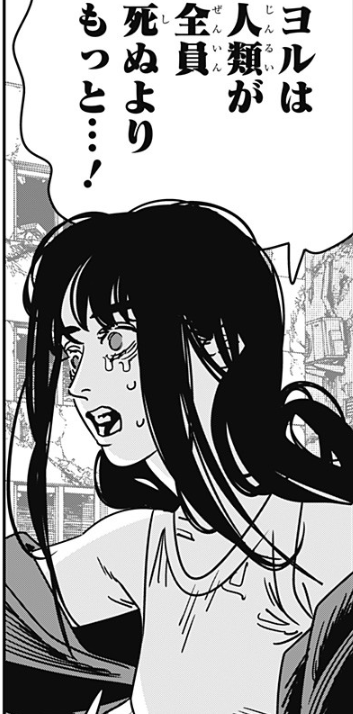 人類滅亡よりも酷いこと・・・それはヨルとデンジがたくさんの子供を作ること、だったりして。lol