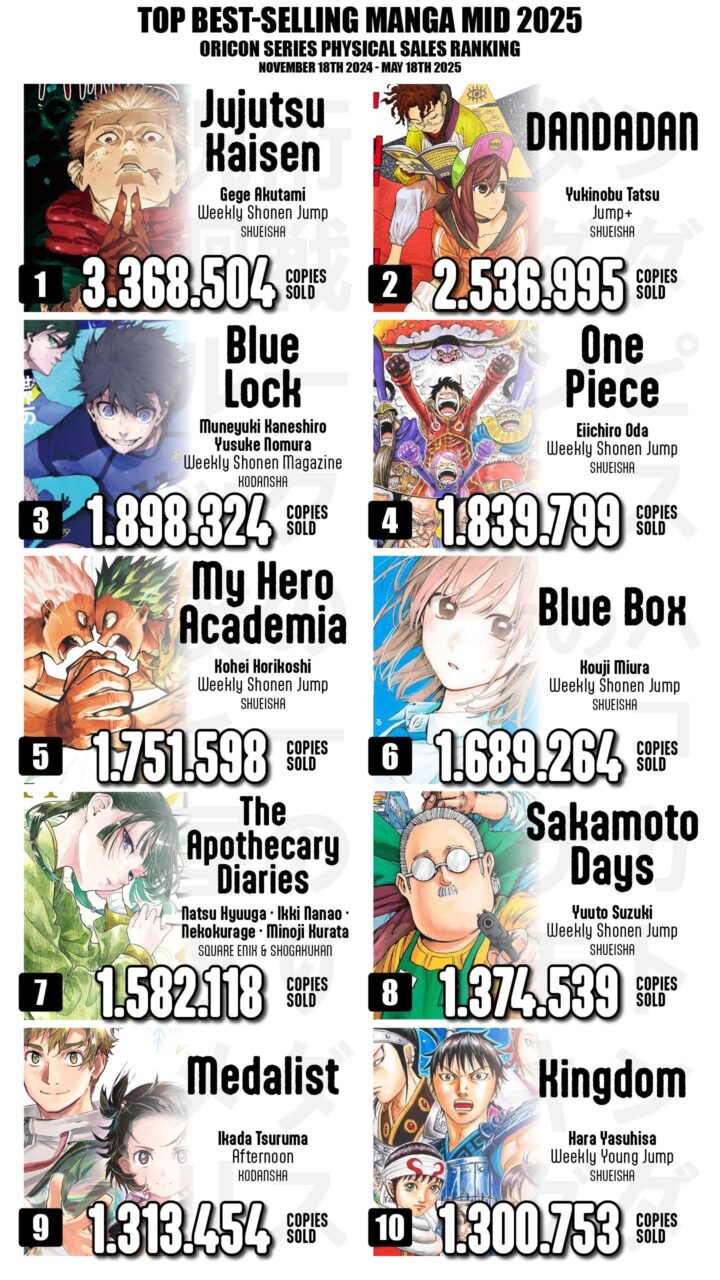 「ONE PIECE」はまだあと2巻分あるし、「ダンダダン」はアニメ2期で盛り上がるし、完結済みの「呪術廻戦」は現時点でリードしている。(懐玉・玉折編の総集編映画の効果も多少はあるかも?)